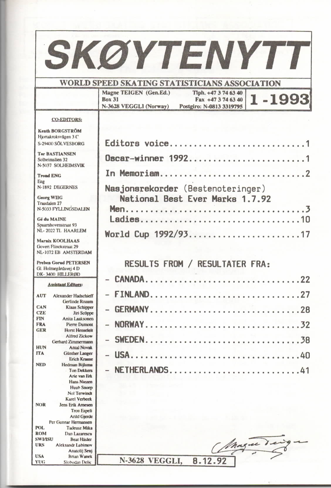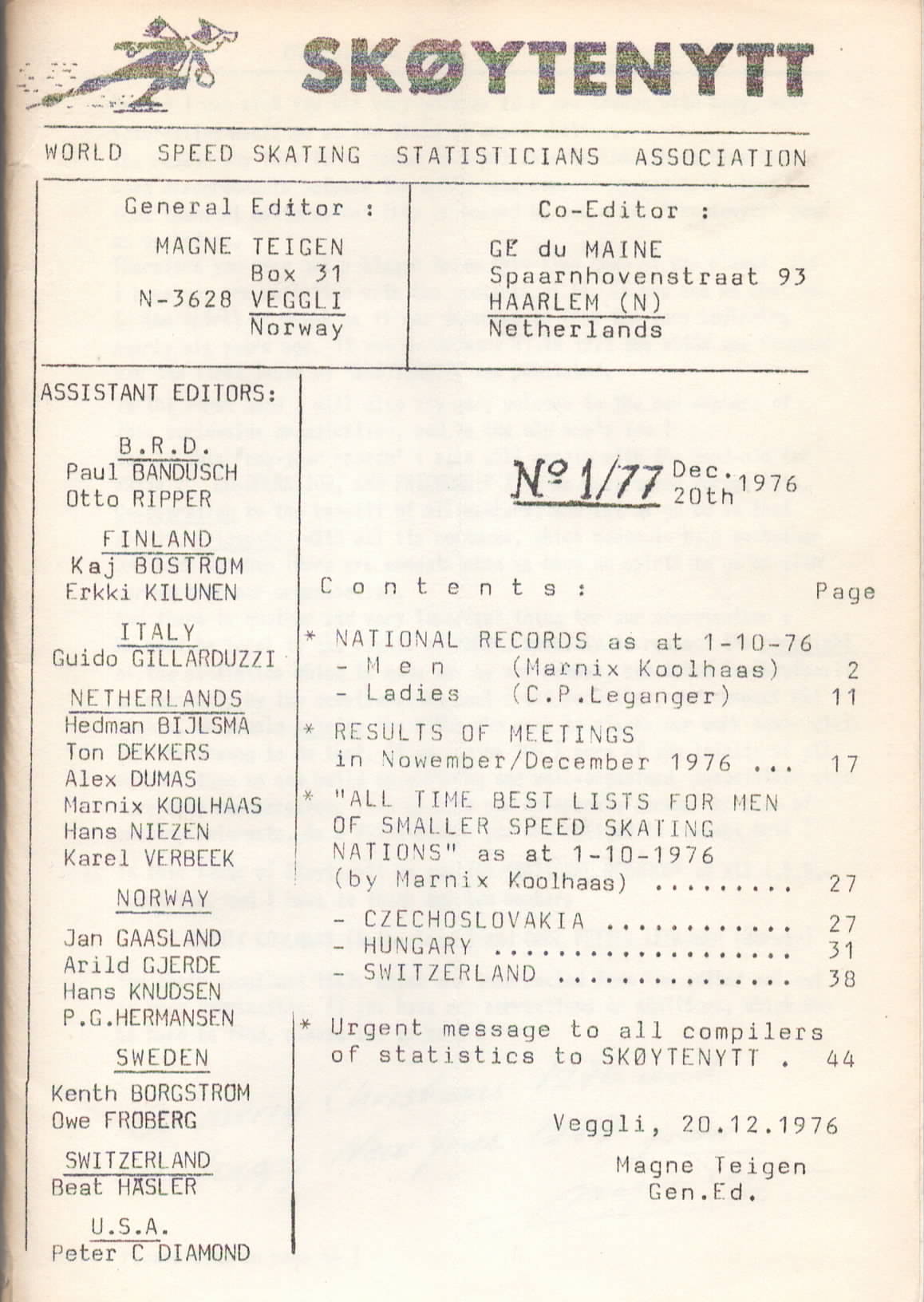 | Categorieën | Overig | Tijdschriften / Schaatssport | Langebaan / Statistiek |