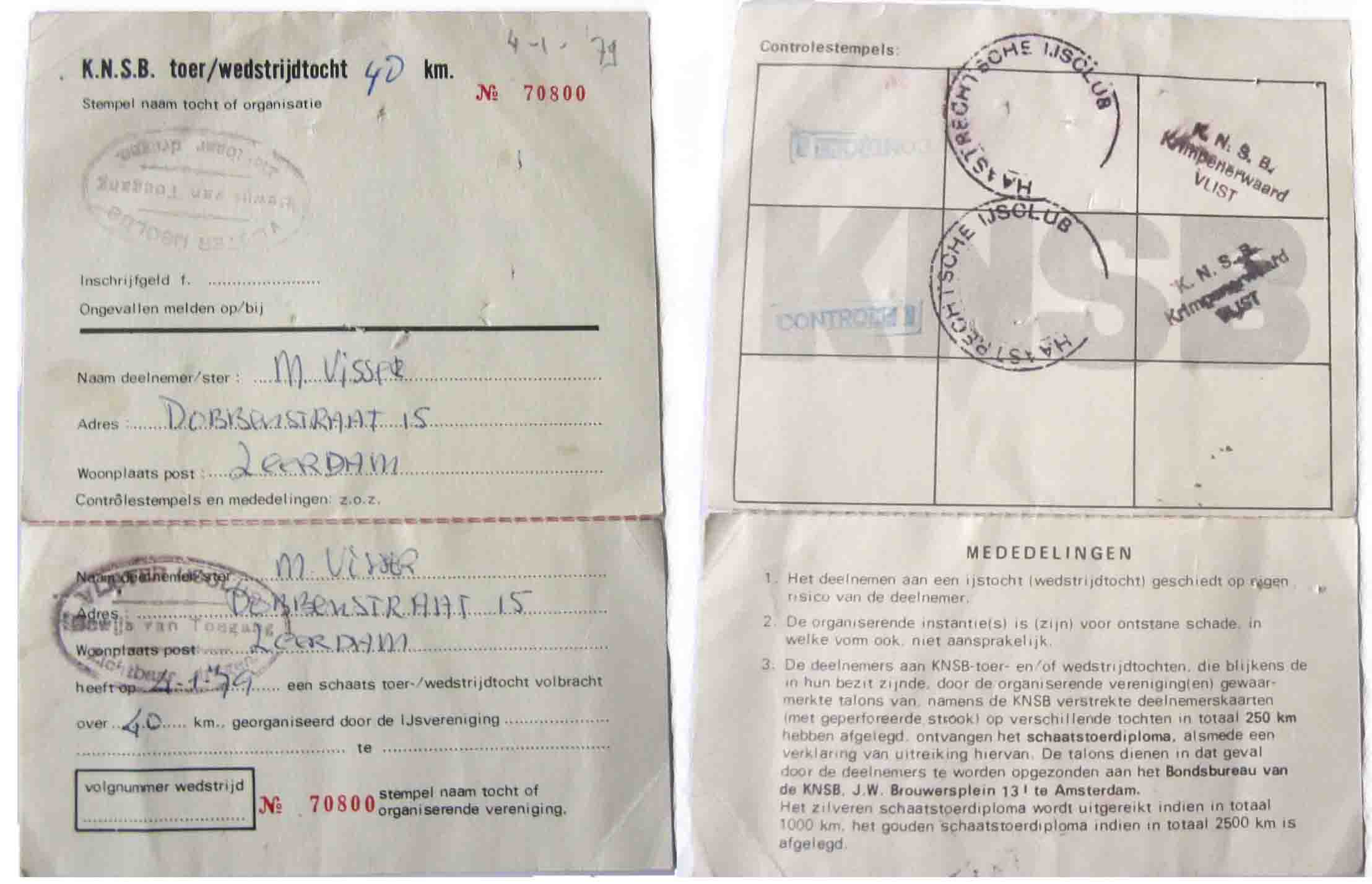 Op de medaille van de tocht op 28 december 1996 is de datum ingeslagen. Op alle andere medailles ontbreekt een datum. Soms krassen schaatsers zelf de datum op de achterkant zoals bij de eerste twee afgebeelde medailles is gebeurd. De tocht wordt op alle medailles consequent Twee Provinciën Poldertocht genoemd. Slechts in één geval worden de organiserende ijsclubs (Polsbroek en Vlist) genoemd.