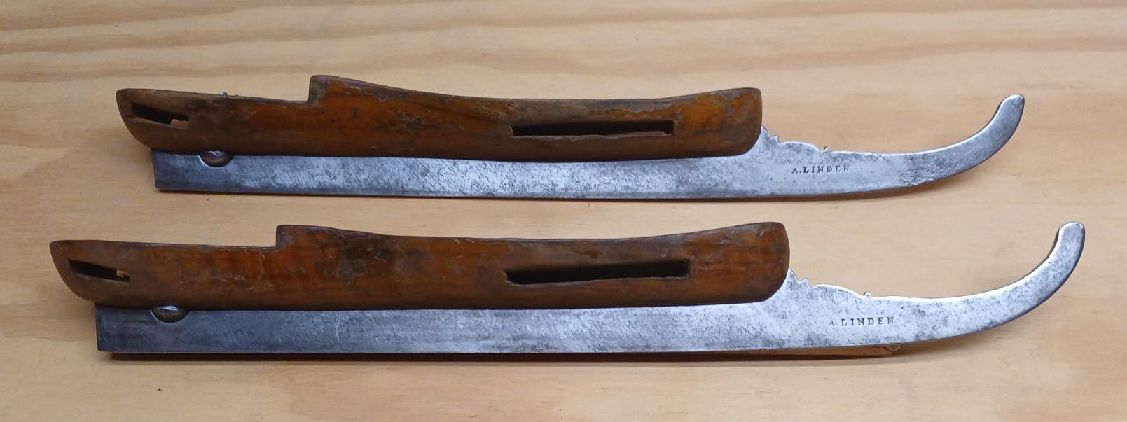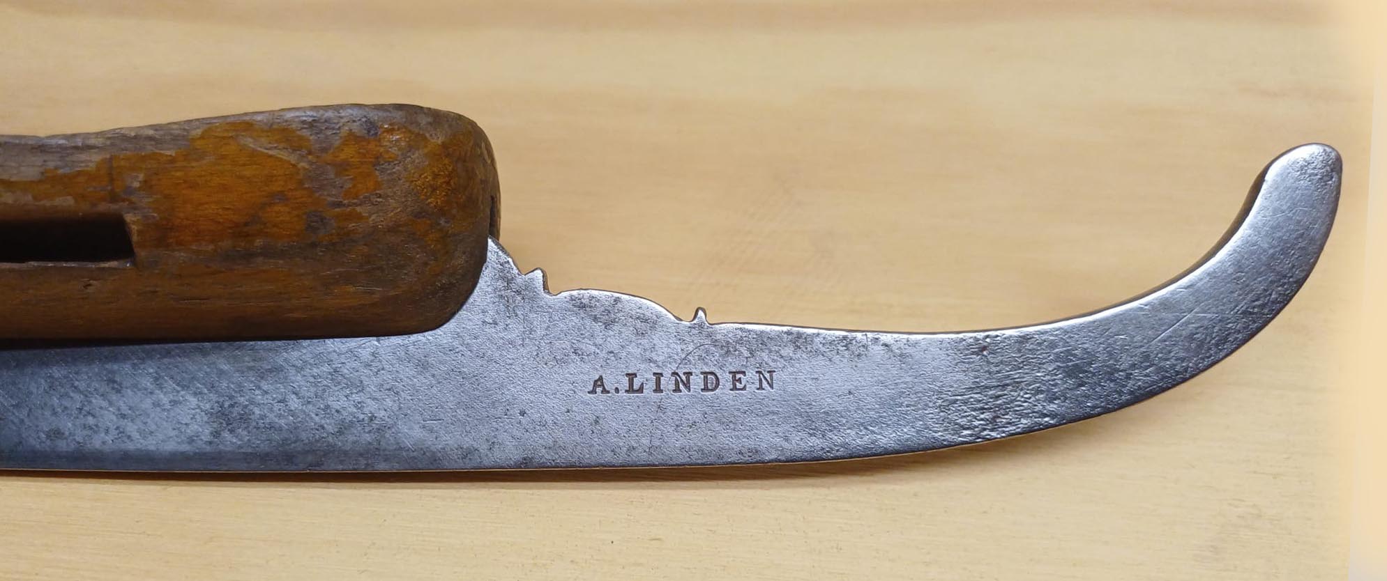 Merkteken A.LINDEN gevonden op een houten schaats die gezien de voetstapel en het schaatsijzer in Engeland gemaakt zou kunnen zijn. Het gaat mogelijk om een schaatsenverkoper uit Nederland.