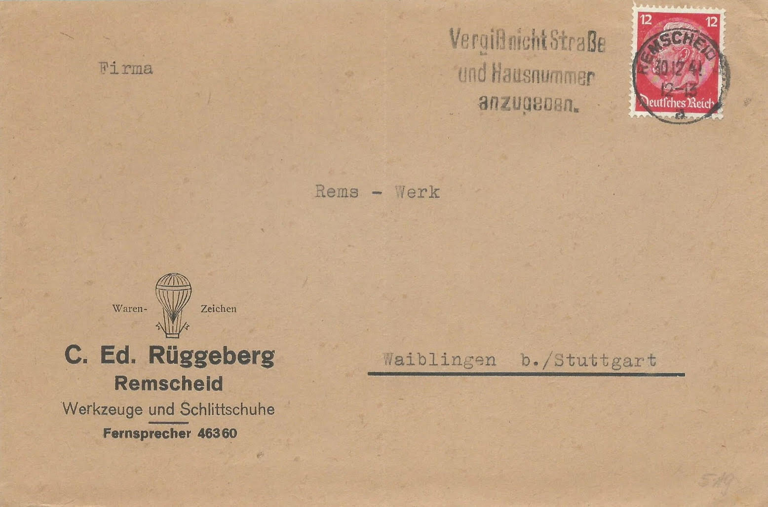 De firma C. Ed. (Carl Eduard) Rüggeberg is opgericht in 1874. Het bedrijf stond nog geregistreerd in 1951 als fabriek en groothandel.