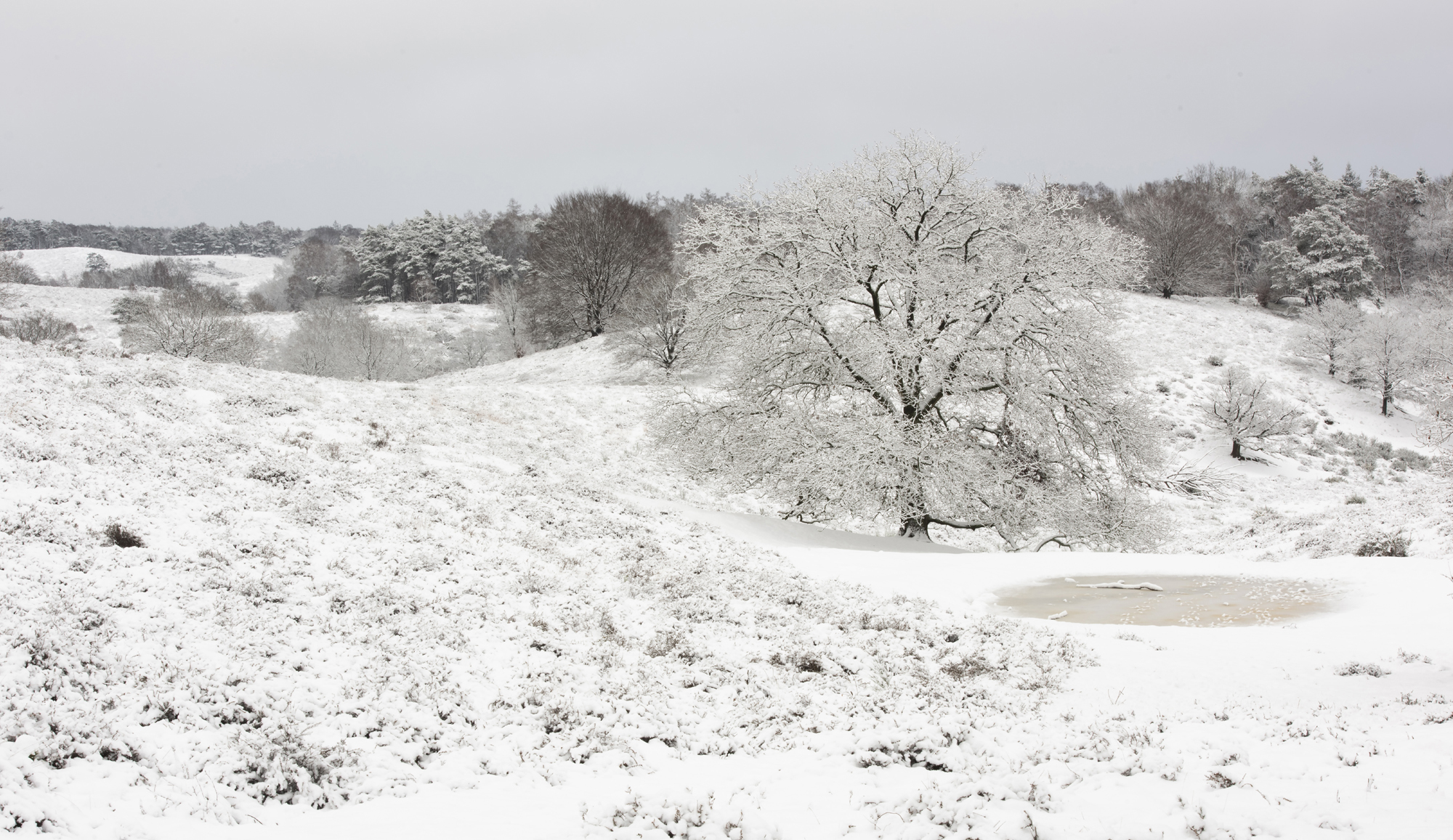 December was bovennormaal warm. De acacia’s begonnen alweer te bloeien en veel bomen zaten extreem lang in het blad. Er was eind november wel een korte vorstinval in het oosten van het land, zodat de natuurijsbaan van Winterswijk een paar uur open kon. Ook was er wat sneeuwval, maar overwegend waren de temperaturen ver boven nul en de standaardwaarden voor december. Maar in de slotweek greep koning Winter in.